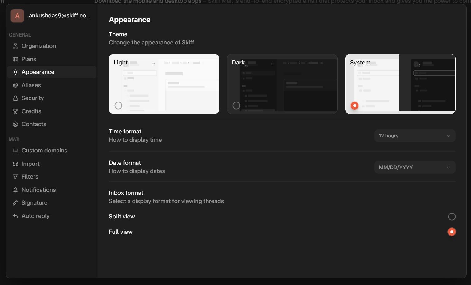 - Add your custom domains or get it from Skiff Domains (with paid plans)