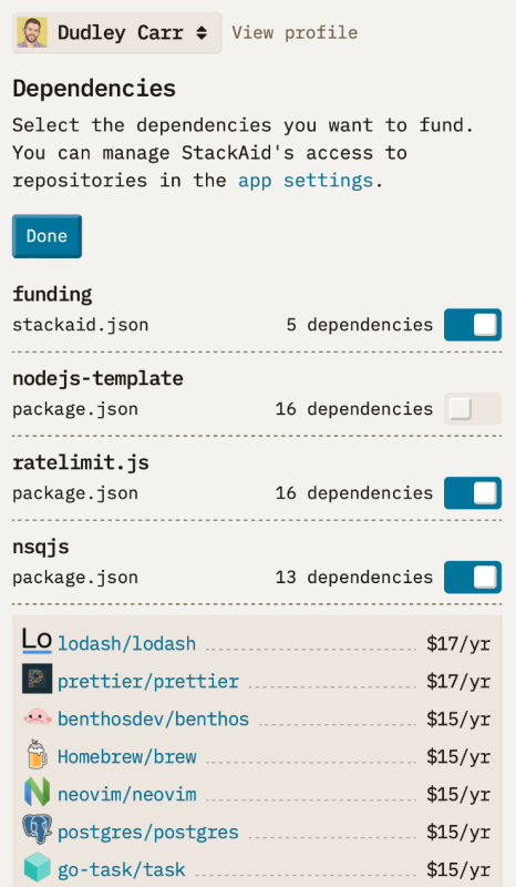 StackAid aims to help you quickly fund the dependencies of your project in one go.