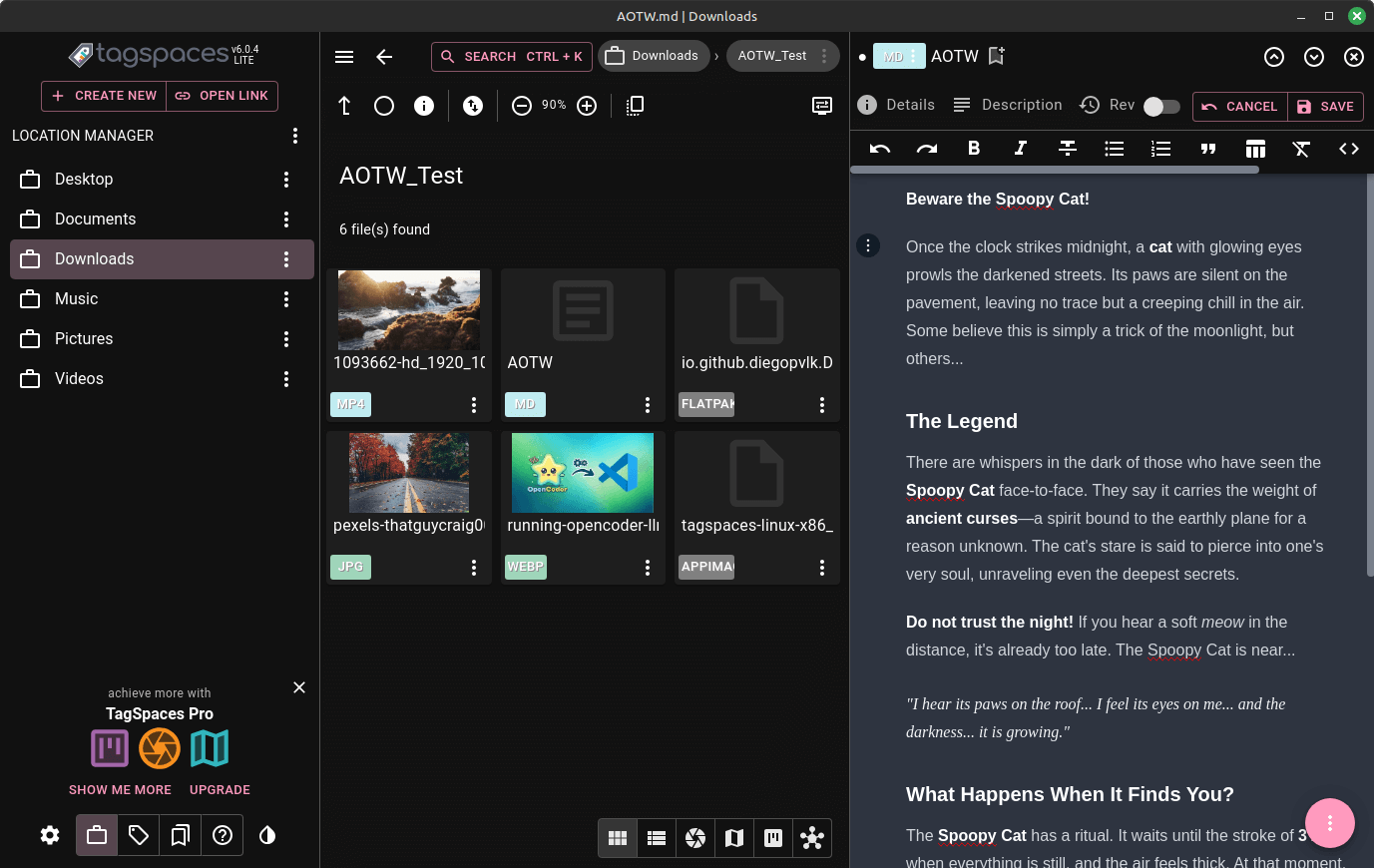 I tested the official AppImage for TagSpaces Lite on a Linux Mint 22 system and checked out the file management and note-taking features of it.