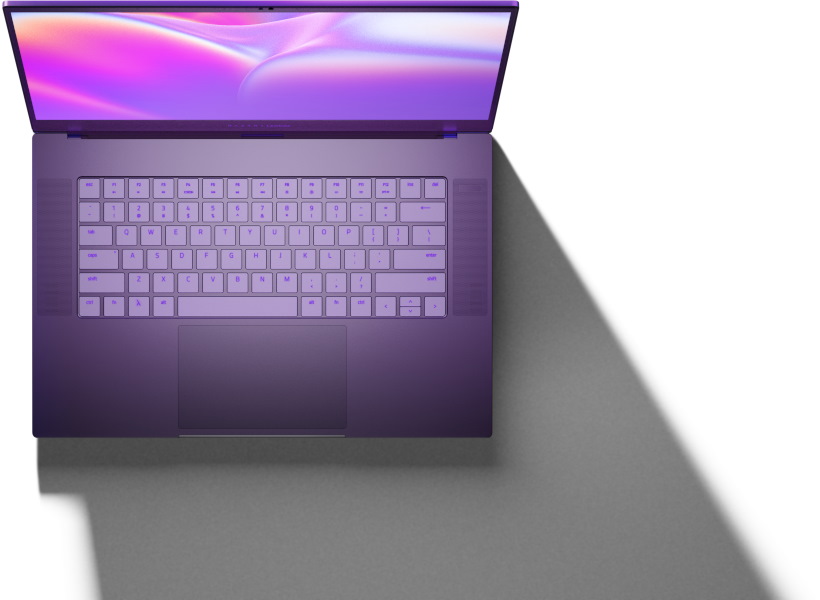 You only find the lambda logo as the primary on the lid and a Razer x Lambda text on the bottom bezel of the screen. And, the purple accent goes all over, Lambda taking the lead on its branding here.
