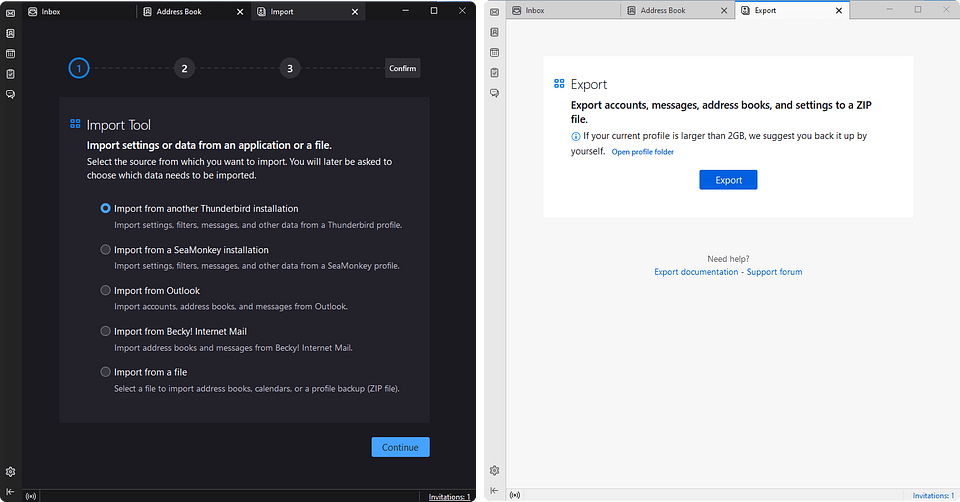 Now, with Thunderbird 102, you get this feature built-in. The step-by-step wizard should help users import/export essential data quickly.