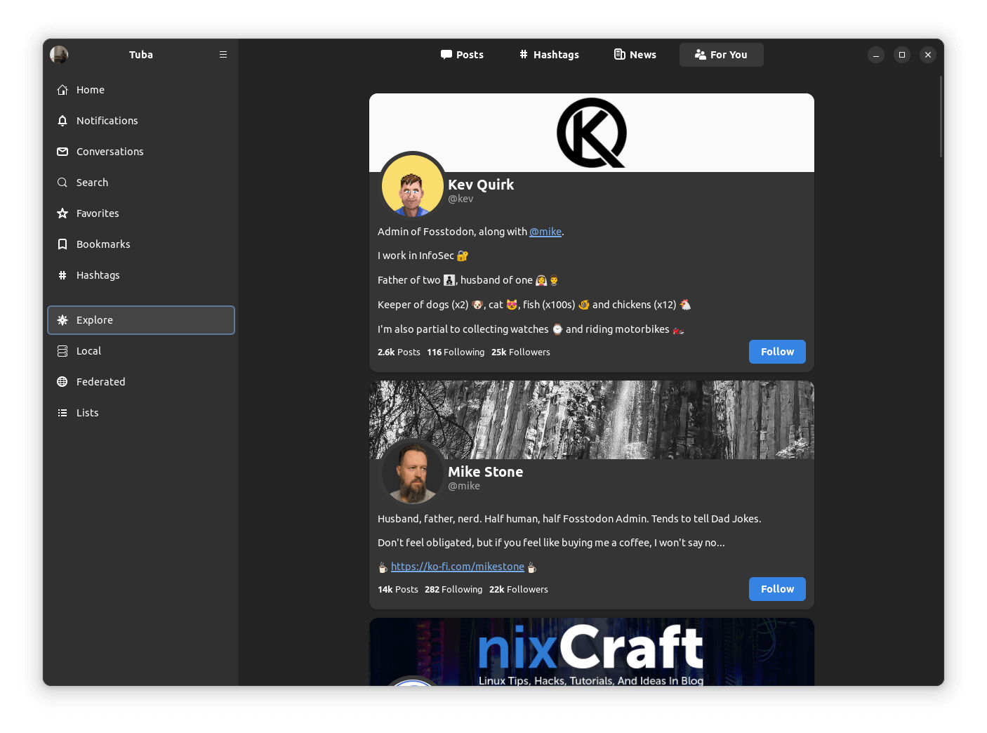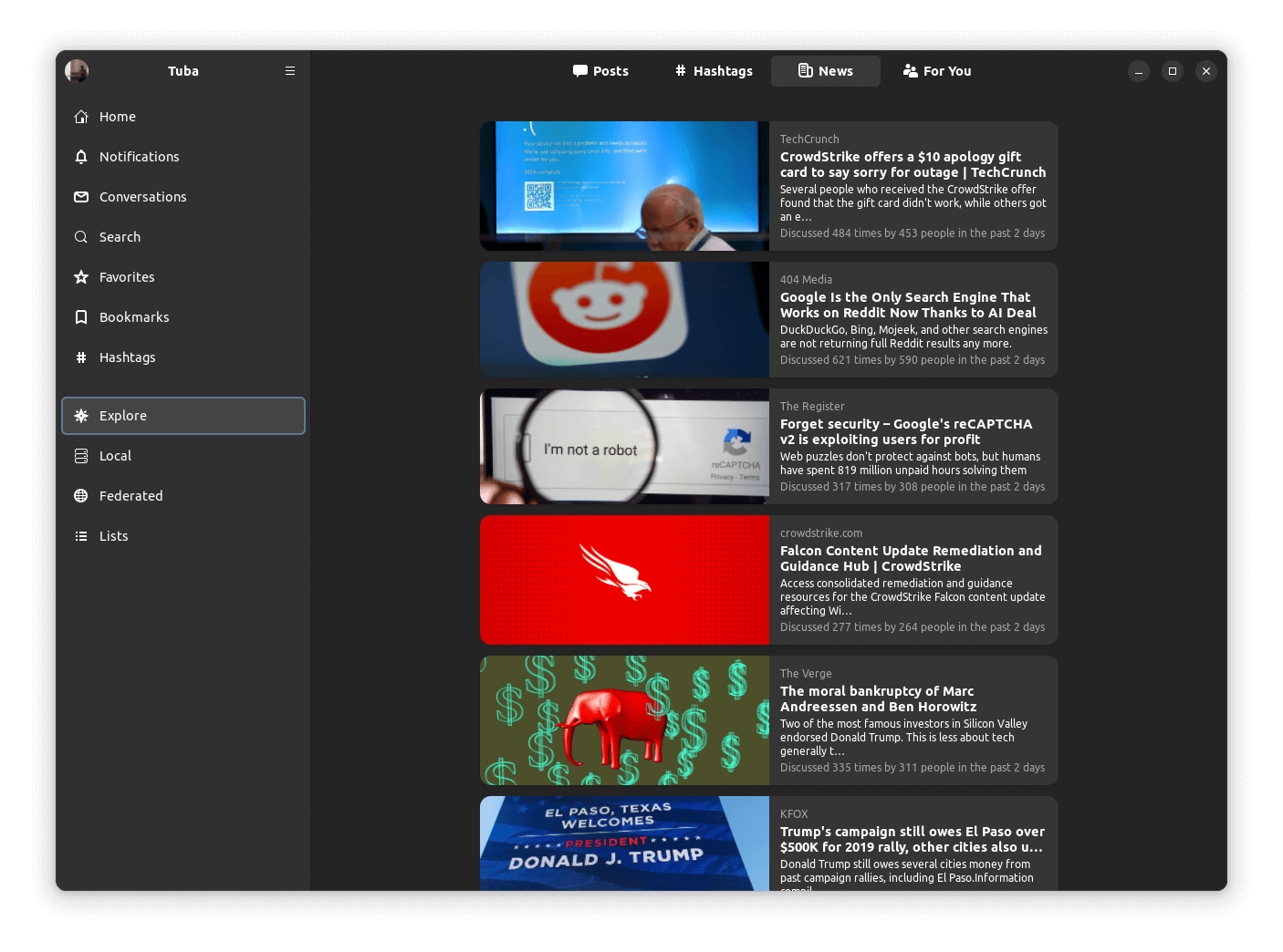Developed by a group of dedicated developers, Tuba is a fork of the now defunct Mastodon client, Tootle, that is powered by the Vala programming language.