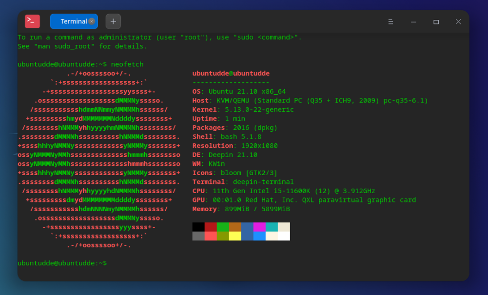 UbuntuDDE Remix 21.10 features Linux Kernel 5.13.0-22, to be specific.