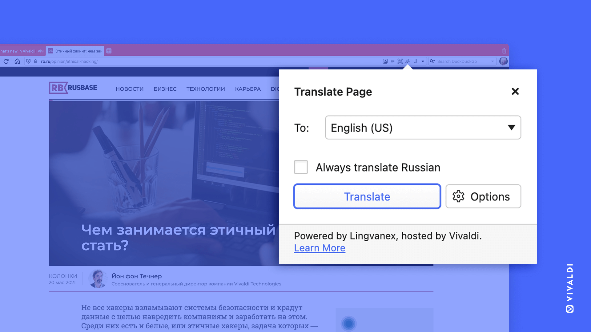 But now that you have an integrated tool with Vivaldi that facilitates your browsing experience without compromising your privacy. You can access the translation feature using the icon in the address bar whenever you load a website with a different language.