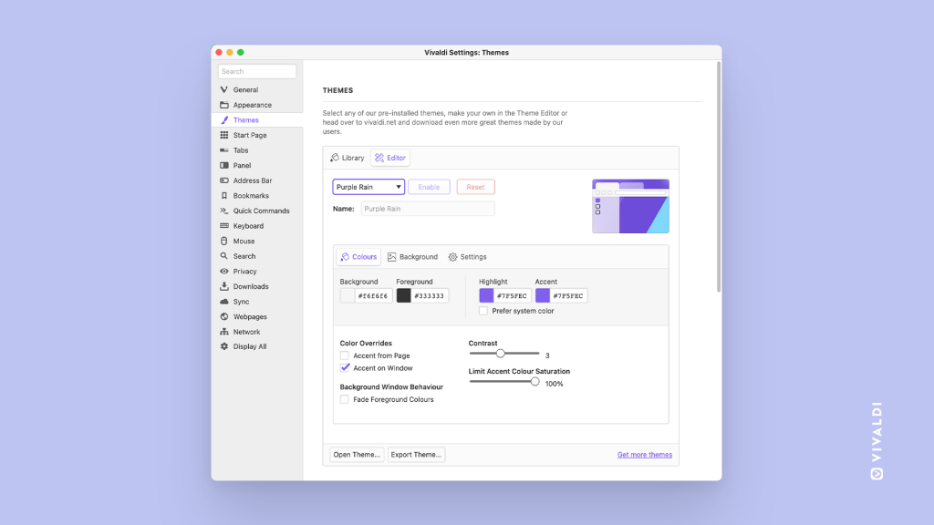 Themes have been one of the best features of Vivaldi, not just because you get to choose from a variety of pre-installed ones. It’s because you get to customize your theme or edit pre-installed ones.