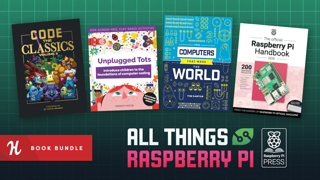 The 16-book library also includes just-released editions of The Official Raspberry Pi Handbook 2026, Book of Making 2026, and much more! Whether you’re just getting into coding or want to deepen your knowledge about something more specific, this pay-what-you-want bundle has everything you need. And you support Raspberry Pi Foundation North America with your purchase!