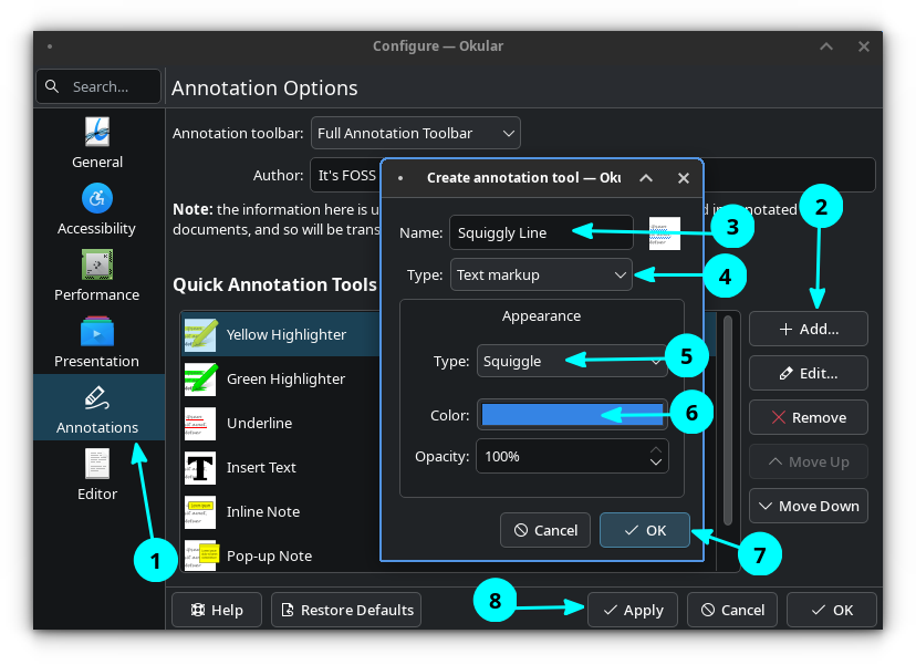 You can also use the Add button to create a new highlight style. Give it a name, configure its appearance and then click on Ok and Apply to set it.