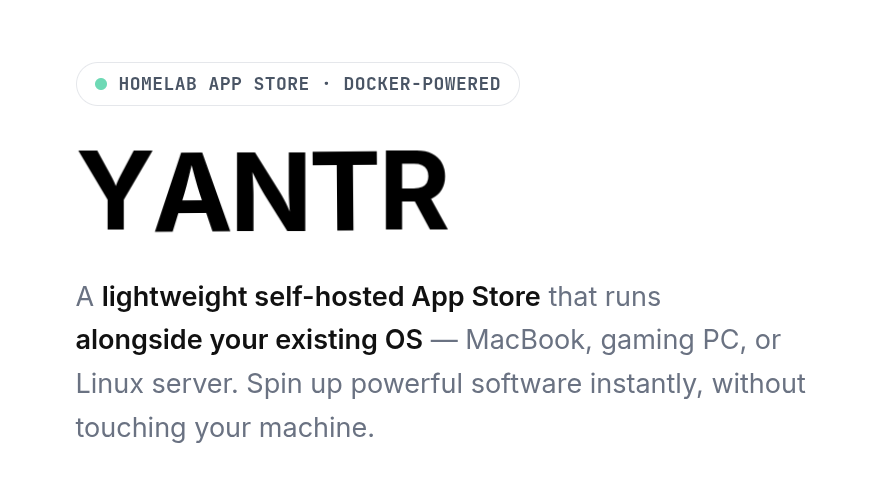 Yantr is a self-hosted app store for your homelab that runs as a single Docker container on top of whatever OS you're already using.