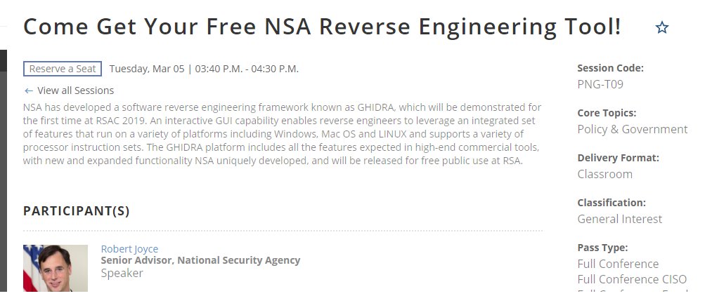 NSA cybersecurity advisor Rob Joyce announced the public release at the RSA Conference 2019 in San Francisco.