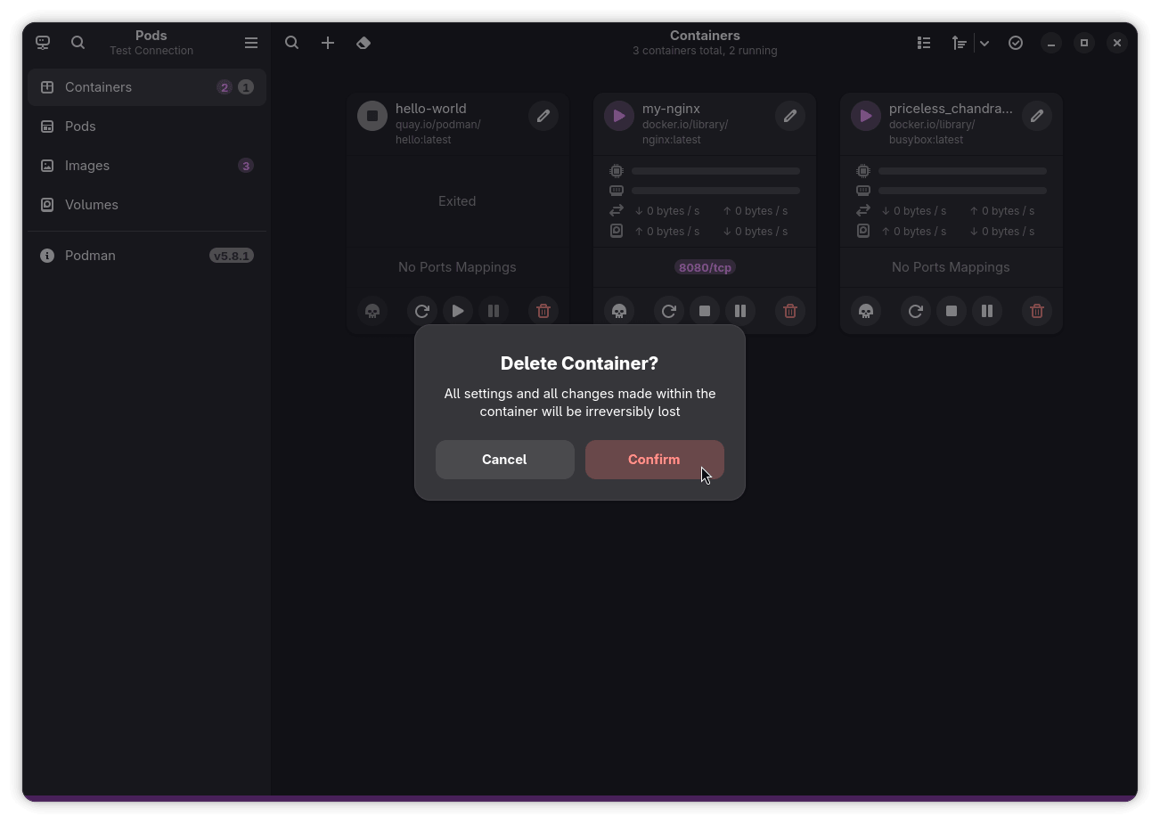 With Pods 3.0, the entire backend was rebuilt to support multiple container engines, with experimental Docker support being the first addition to come out of that change.