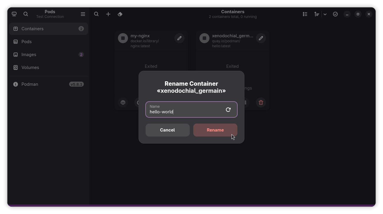 I did notice that freshly pulled containers came with long, jargony names by default. That was easy enough to sort out though, as Pods lets you rename them directly from the interface.