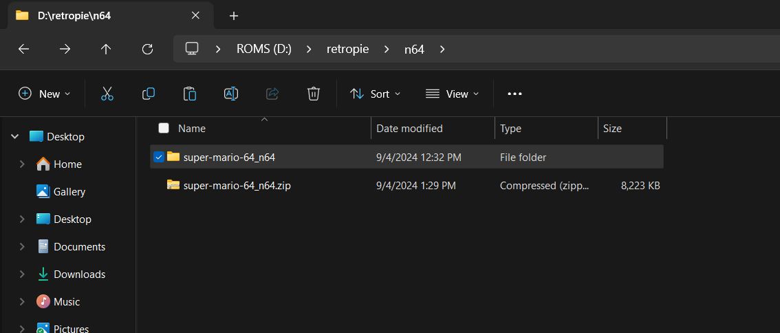 I'm saving my ROMs in this directory: /home/user/RetroPie/roms/n64