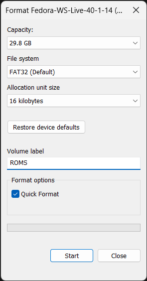 This is the most straightforward method. Just format a USB drive to FAT32. I'm doing a Quick format in Windows: