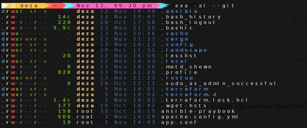 If there’s one tool that convinced me Rust CLI apps were worth exploring, it’s exa. It feels familiar but adds what the original ls has always lacked: sensible colors, icons, and Git awareness.