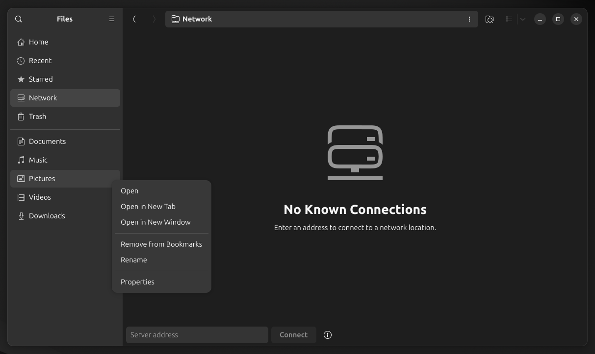 The file manager app Nautilus (Files) sees many improvements, with the most notable one being the redesigned sidebar, which now features removable bookmarks in the lower part of the left-hand column.