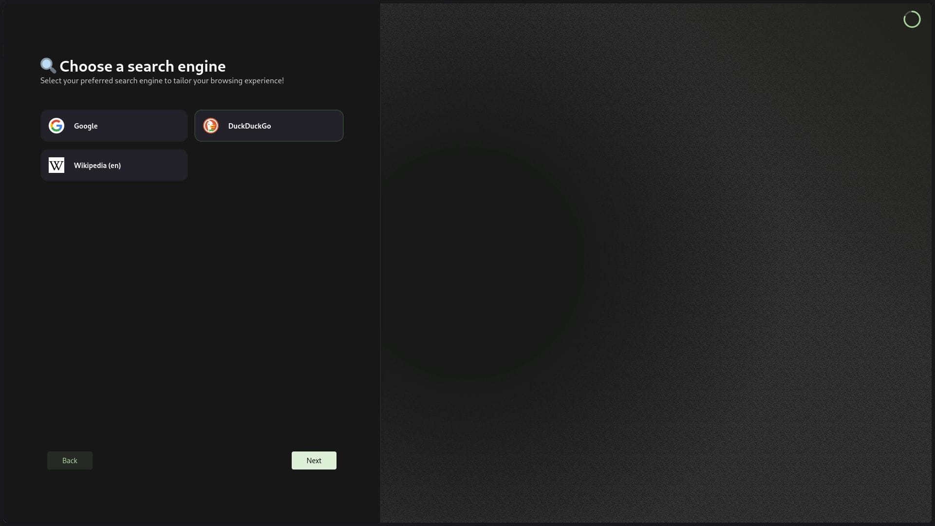 The welcome wizard took me through the usual first-time setup, allowing me to tweak the appearance, import data from an existing browser, and select a default search engine (I went for DuckDuckGo).
